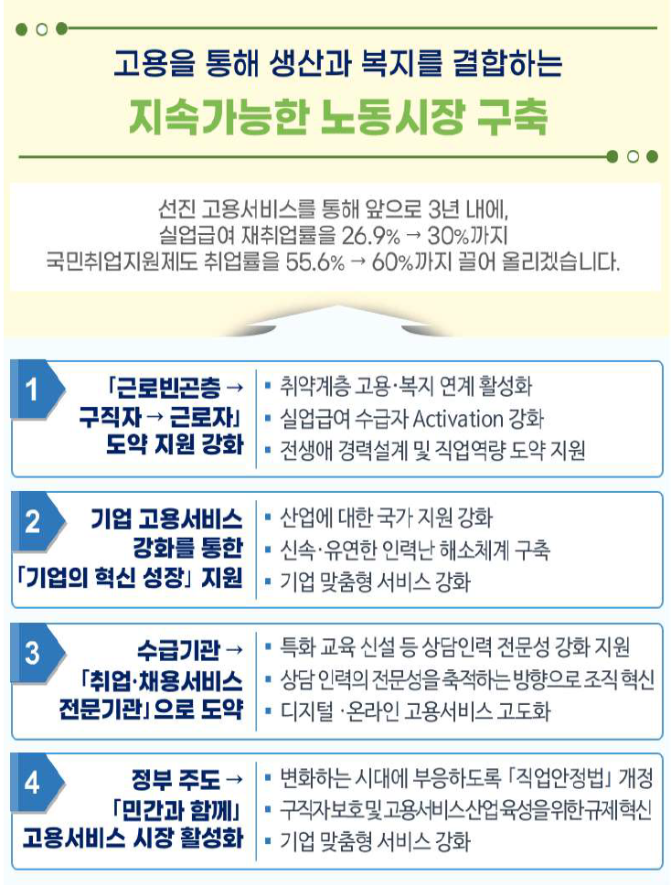 정부는 1.29 고용서비스 고도화 방안과 1.30 지속가능한 양질의 일자리 창출을 위한 제5차 고용정책 기본계획