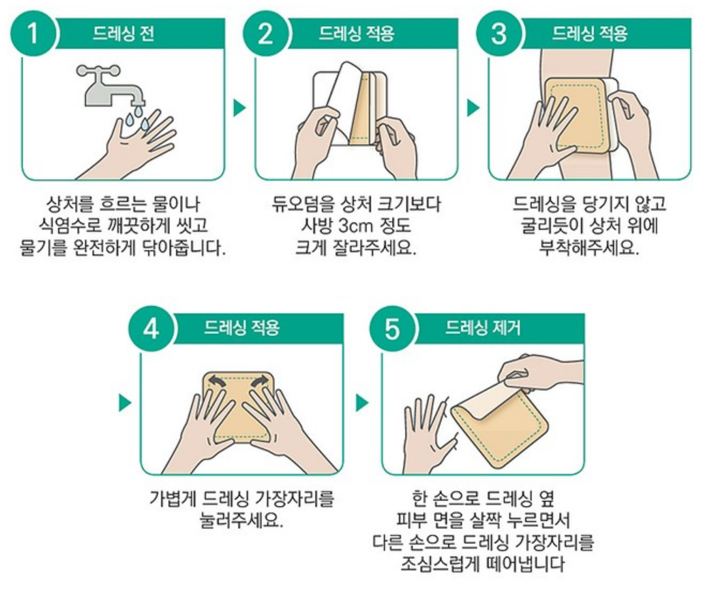 마지막으로, 습윤밴드를 하루에 한 번 정도 바꿔줍니다.
