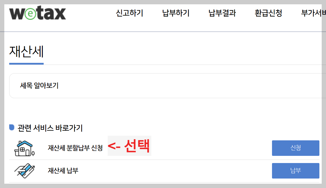 위택스에서 재산세 분할납부 신청을 25일까지 받습니다.