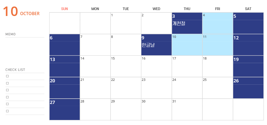 9일부터 대체공휴일인 12일까지. 4일 연휴입니다.