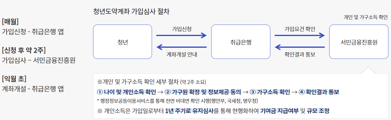 청년도약계좌 취급은행의 모바일앱을 통해 매월 비대면으로 가입신청이 가능합니다.