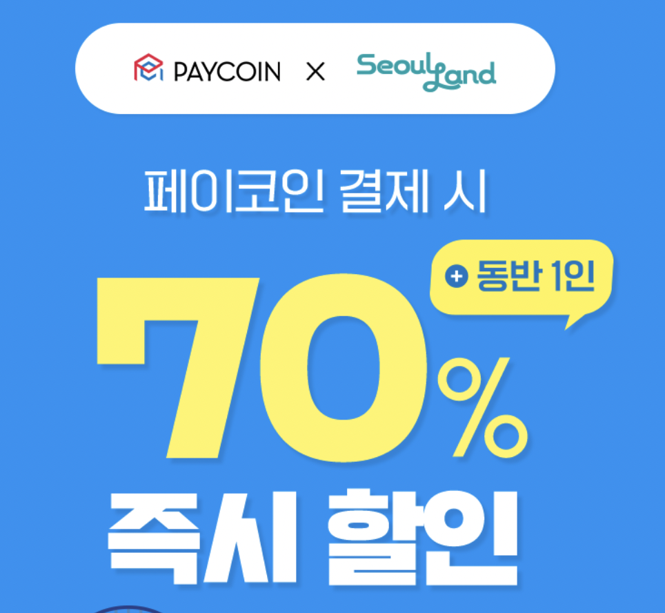 서울랜드 70% 할인 받는 방법을 알아보겠습니다. 페이코인을 이용하면 70%를 할인받을 수 있습니다.
