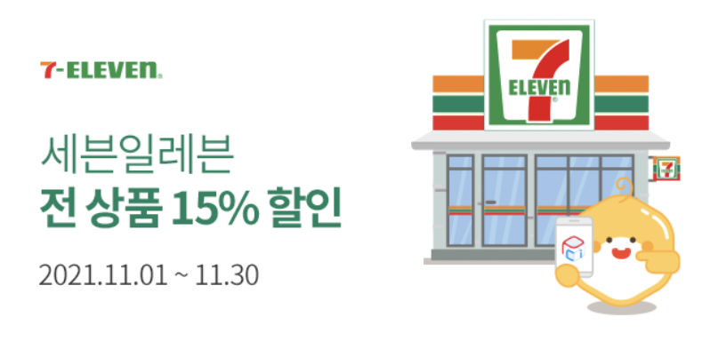 공지 이벤트 [세븐일레븐] 전상품 15% 할인 --> --> --> *15% 할인은 1일 1회, 회당 3,000원 한도로 할인이 적용됩니다.*결제시점 PCI-KRW환율에 따라 PCI결제량은 변동될 수 있습니다.