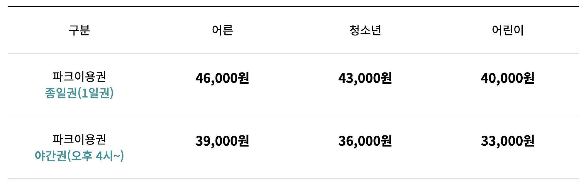 서울랜드 입장권 가격은 아래와 같습니다.