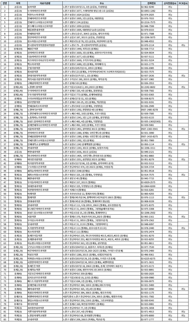 노원구에서는 83개소 지정 의료기관에서만 신속항원검사가 가능합니다.