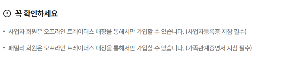또, 트레이더스 클럽 회원의 등급별 혜택을 동일 거주지 성인 가족 1명에게 무료로 제공한다. (가족관계 증명서를 지참하여 오프라인 매장에서만 가입 가능하다.)