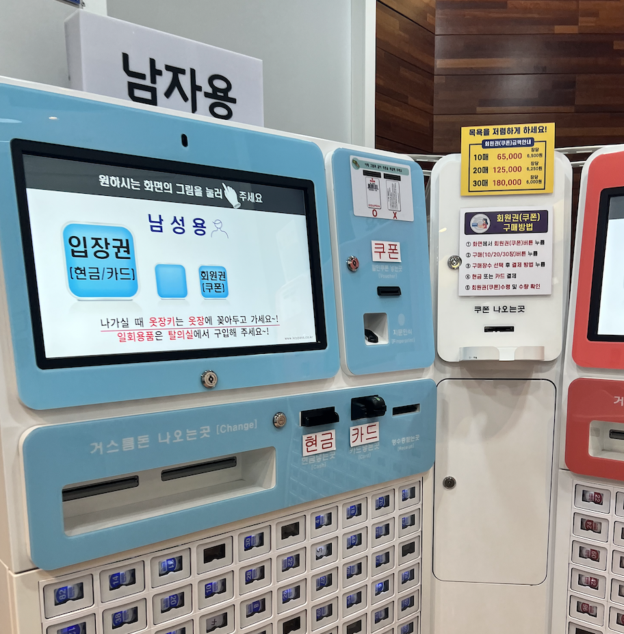 안에 들어가면 세신 비용도 키오스크로 결제하게 되어 있습니다. 이발소도 있구요.